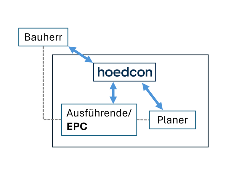 In integrierten Projektabwicklungsmodellen übernimmt hoedcon moderierende und steuernde Aufgaben zwischen den Allianzpartnern.